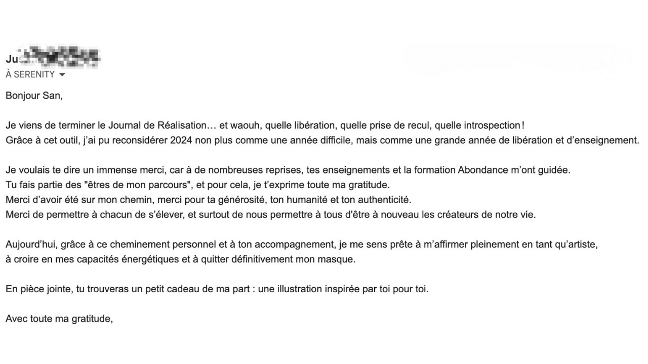 En 2025, j'ai accompagné plus de 1000 clients à travers mes Ateliers SERENITY, mes programmes en ligne et...